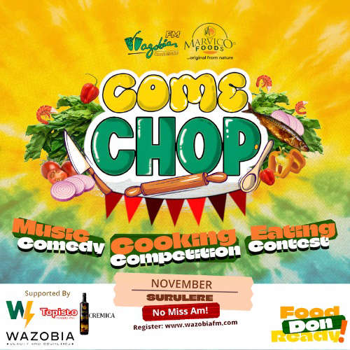 The *Wazobia Come Chop Food Festival* na Nigeria’s biggest celebration of food, culture, and community — proudly powered by *Wazobia FM* in partnership with *Marvico Foods*.